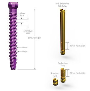 The Primus™ MIS Spinal Fixation System delivers versatility and efficiency through the power of adaptability in a compact, modular system. This minimally invasive modular screw system provides a vast array of implants engineered to work efficiently with intuitive instrumentation for a streamlined, consistent solution. The 5.5/6.0mm MIS system offers a multitude of multi-axial pedicle screws, self-tapping dual-lead cannulated, and diameters from 4.5mm to 8.5mm and lengths from 35mm to 55mm.
